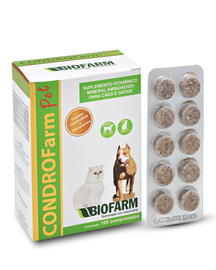 Condrofarm Pet é indicado na suplementação de mucopolissacarídeos, sulfato de condroitina e glucosamina para cães e gatos.